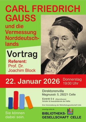 Die Bibliotheksgesellschaft Celle veranstaltet am 22.01.2026 den Vortrag "Carl Friedrich Gauss und die Vermessung Norddeutschlands" von Prof. Dr.…